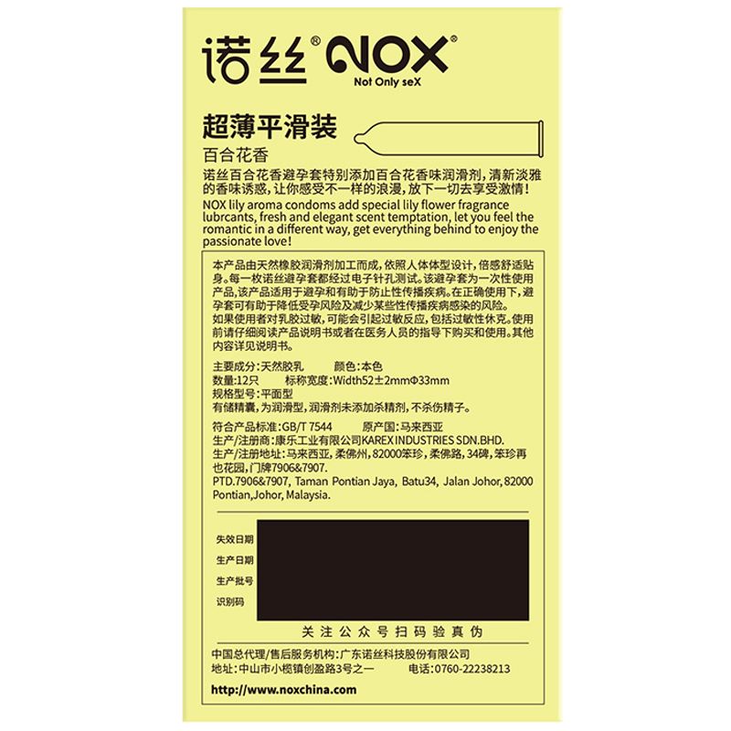 【避孕润滑】诺丝百合花香安全套12只装